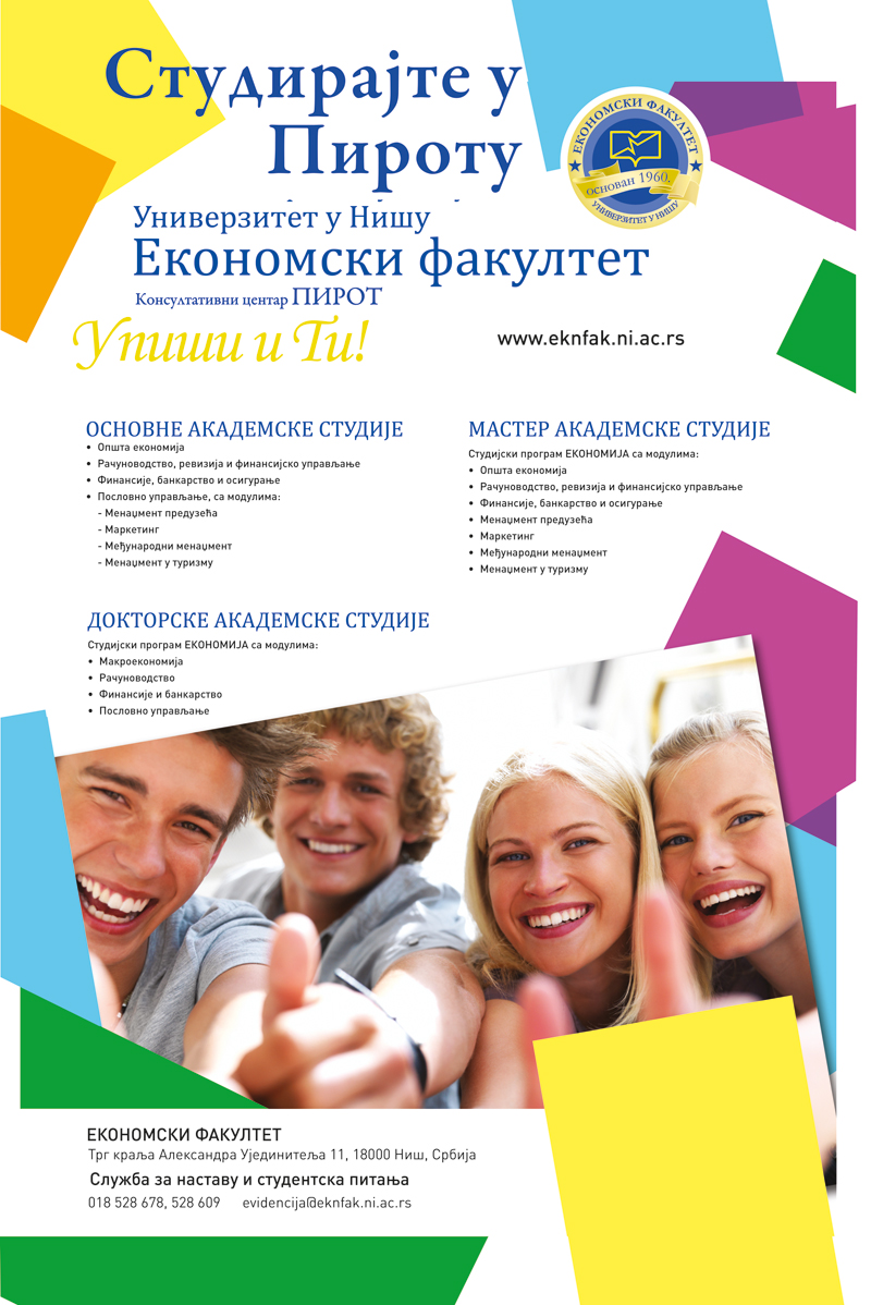 Na ovaj način studenti mogu u svom gradu steći sva potrebna znanja iz oblasti ekonomije i dobiti diplomu Ekonomskog fakulteta iz Niša. Pozivamo buduće studente da iskoriste ovu mogućnost i da svoje dalje školovanje nastave u Pirotu i na ovaj način značajno smanje troškove svog studiranja.