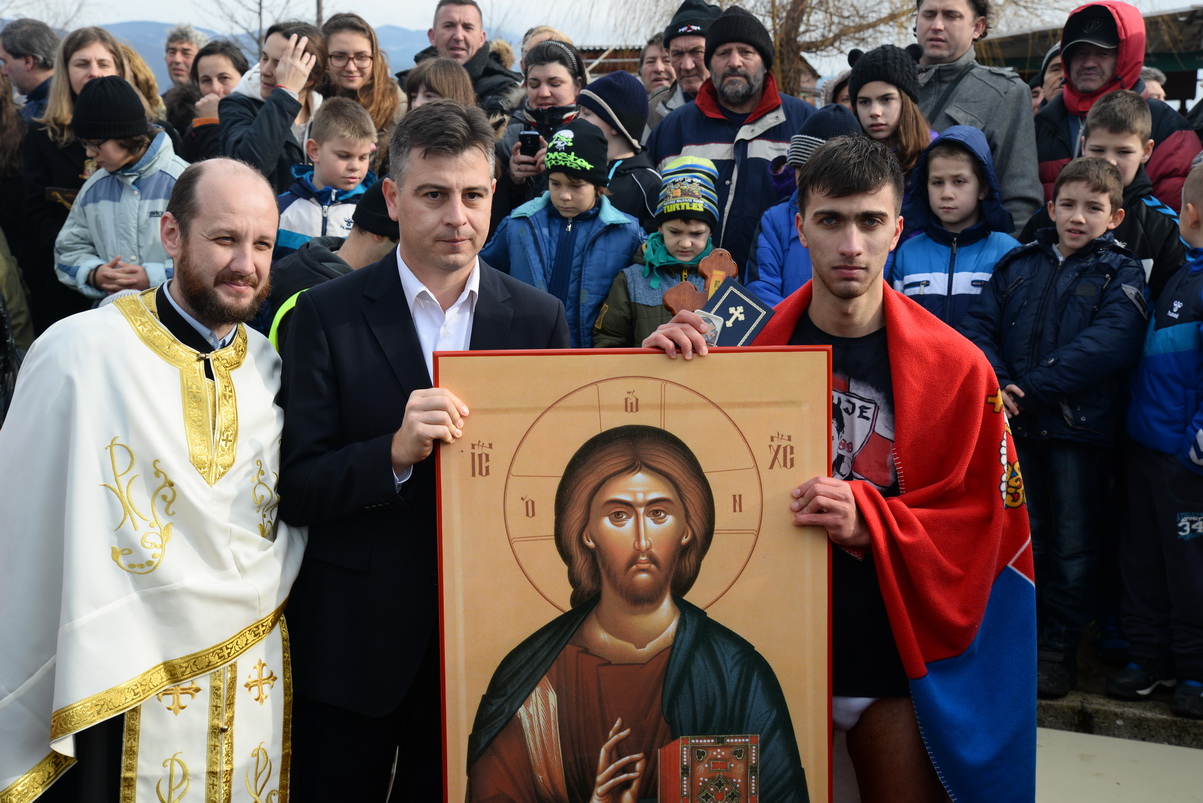 Vasić je pobedniku ovogodišnjeg plivanja Milošu Vučiću uručio i vredan poklon-ikonu.