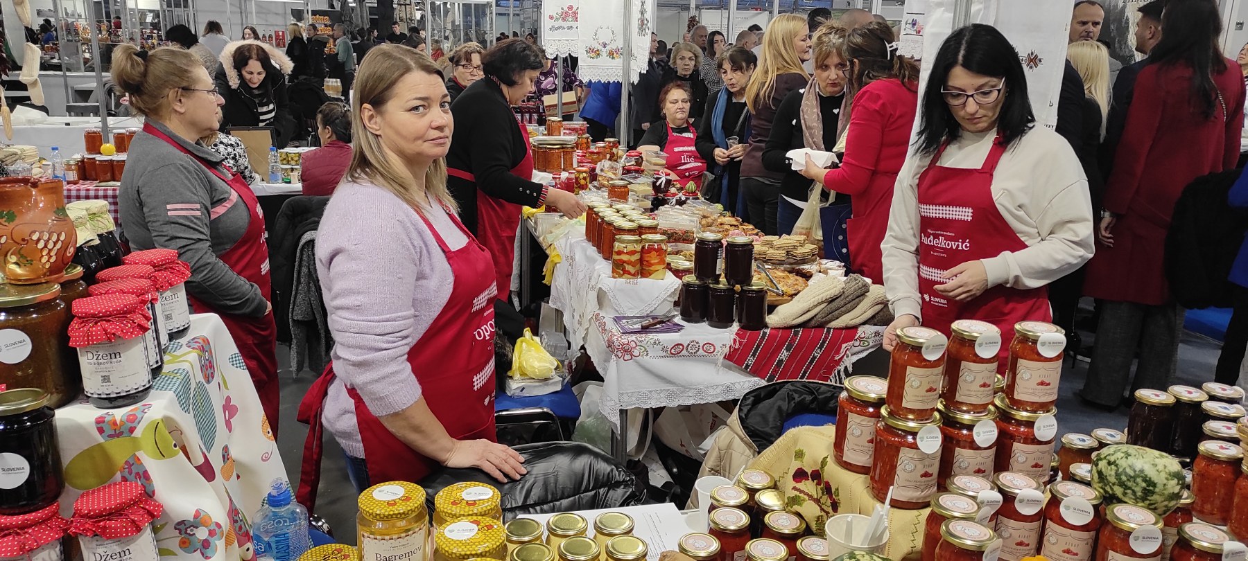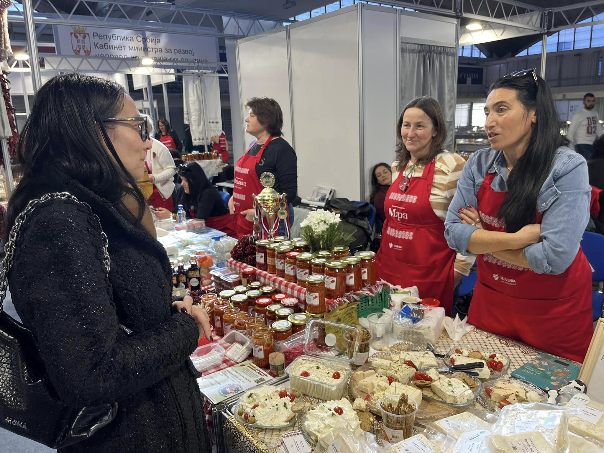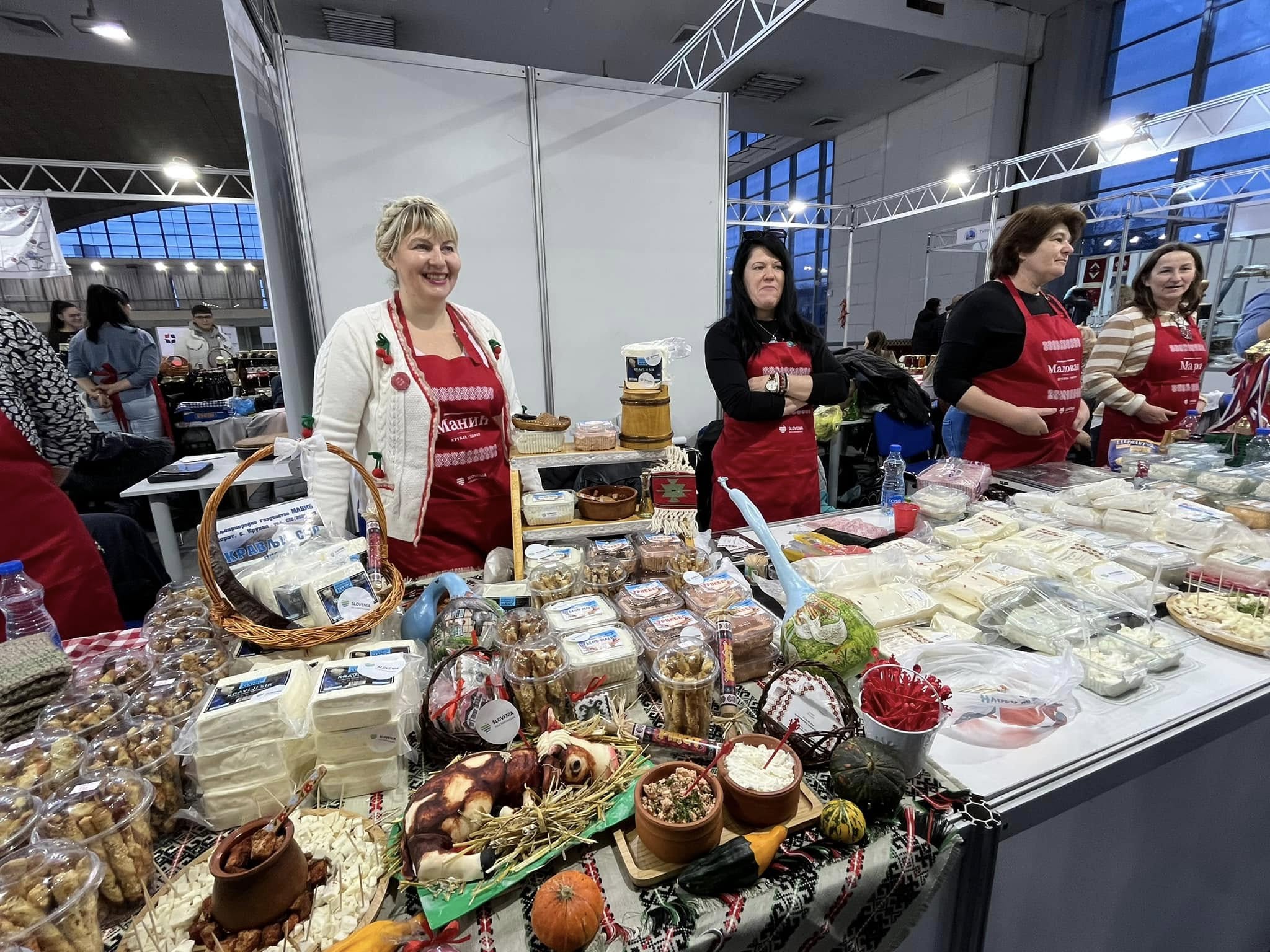 Na štandovima su se našli domaći sirevi, ajvari i ostala slana i slatka zimnica, prirodni sokovi, med, posne kuglice od bulgura, proizvodi od mesa, kolači i brojni drugi proizvodi koji su izazvali interesovanje kako posetilaca, tako i potencijalnih distributera. Trud ovih vrednih žena, njihovu kreativnost i kvalitet prepoznali su i posetioci i stručna javnost. Posebno smo počašćeni što su naš štand na sajmu hrane i pića posetile zamenica ambasadora Slovenije, gospođa Goranka Krošelj i savetnica za kulturu, gospođa Irena Herak. Njihova poseta predstavlja značajnu podršku našim preduzetnicama i njihovom radu.