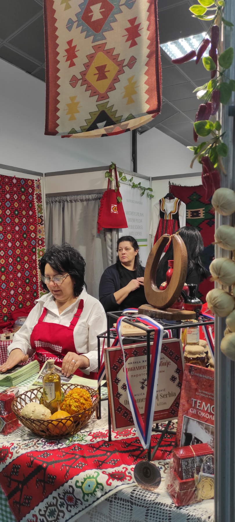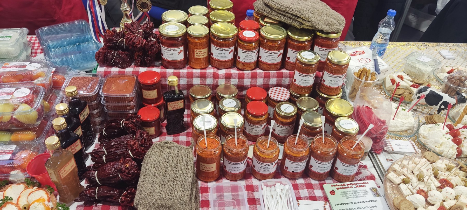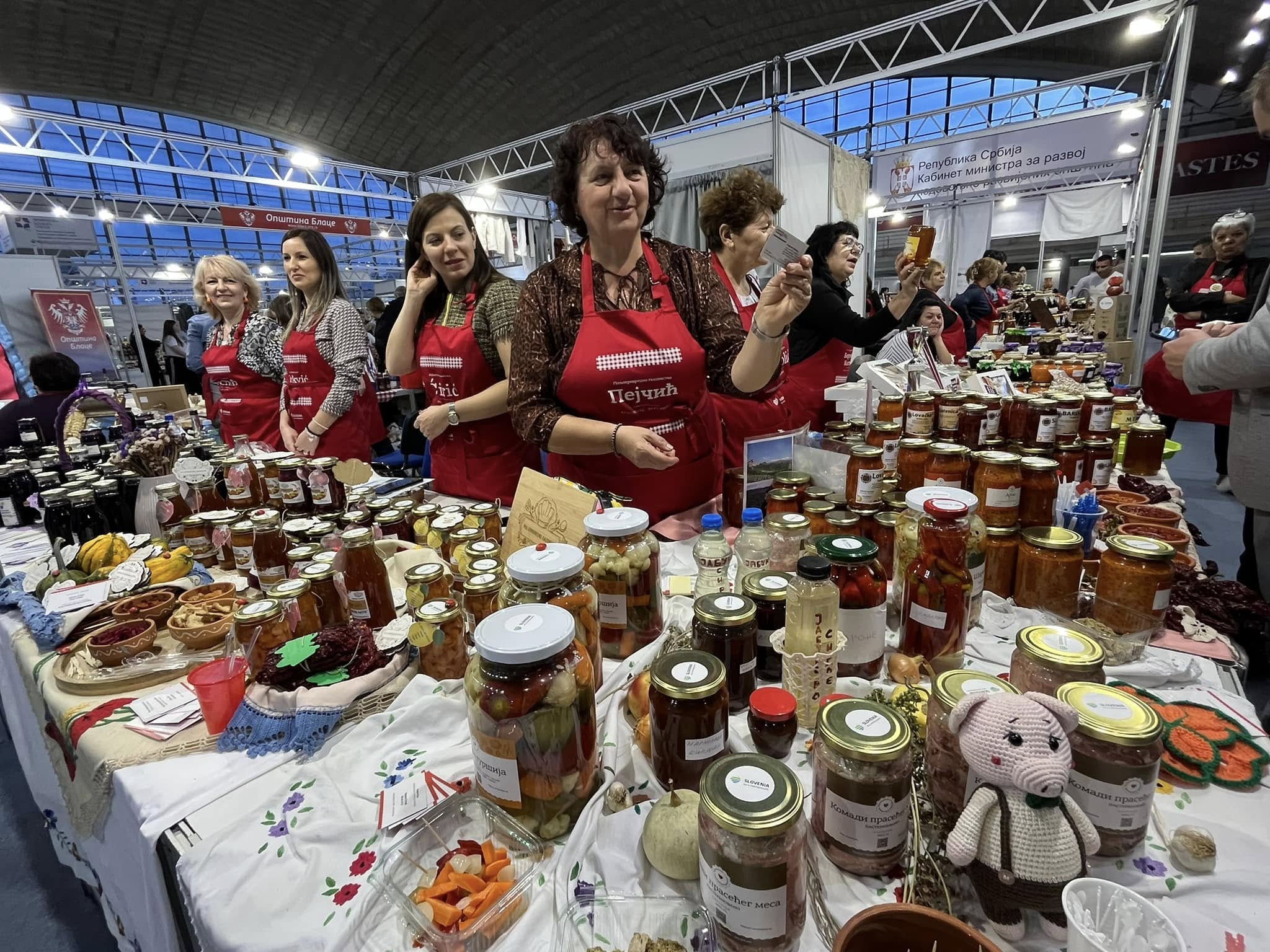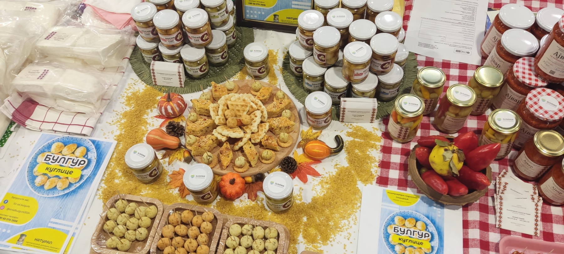 Na štandovima su se našli domaći sirevi, ajvari i ostala slana i slatka zimnica, prirodni sokovi, med, posne kuglice od bulgura, proizvodi od mesa, kolači i brojni drugi proizvodi koji su izazvali interesovanje kako posetilaca, tako i potencijalnih distributera. Trud ovih vrednih žena, njihovu kreativnost i kvalitet prepoznali su i posetioci i stručna javnost. Posebno smo počašćeni što su naš štand na sajmu hrane i pića posetile zamenica ambasadora Slovenije, gospođa Goranka Krošelj i savetnica za kulturu, gospođa Irena Herak. Njihova poseta predstavlja značajnu podršku našim preduzetnicama i njihovom radu.