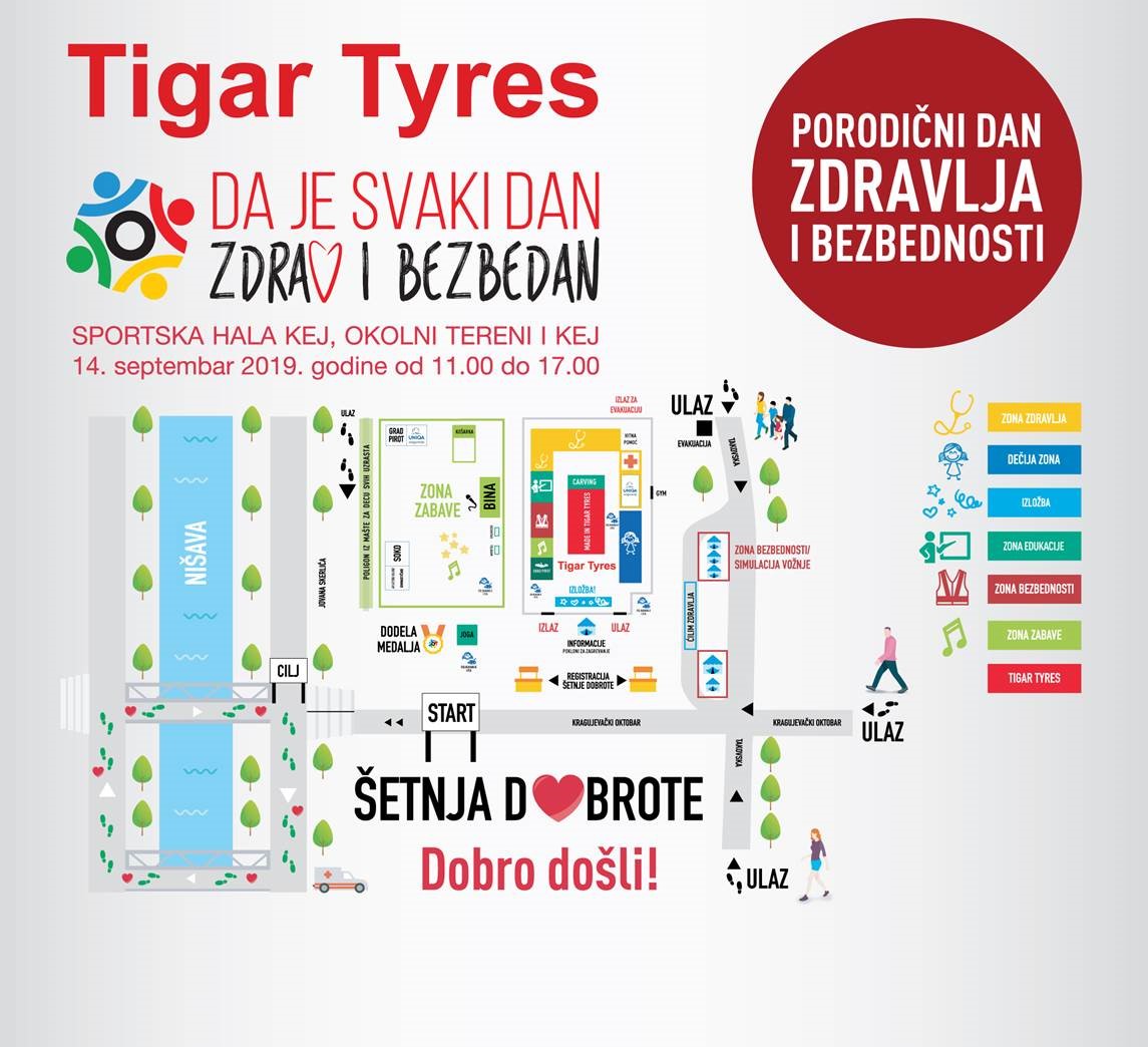 Obaveštavaju se građani da će u subotu, 14. septembra 2019.godine u neposrednom okruženju Sportske hale „Kej“ biti izmenjen režim saobraćaja zbog organizacije manifestacije: "Porodični dan zdravlja i bezbednosti" kompanije „Tigar tyres“.