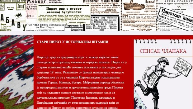 Univerzitetska biblioteka iz Beograda i Grad Pirot ostvarili su, povodom 28.avgusta – slave Grada Pirota, saradnju na izradi internet prezentacije “Stari Pirot u istorijskoj štampi”. Članke o Pirotu moguće je čitati i preuzimati sa adrese http://staripirot.rs ili http://staripirot.ubsm.rs