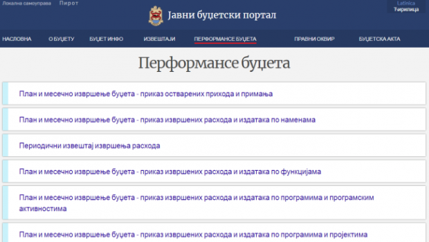 Gradjani Pirota i svi koji to žele moće će da se do najpreciznijih detalja upoznaju sa prihodovanjem i trošenjem para iz Budžeta. Naime, na sajtu grada nalazi se Javni budžetski portal koji je instaliran na inicijativu gradonačelnika Pirota, Vladana Vasića, a uz pomoć švedske Vlade i Stalne konferencije gradova i opština. Saša Jelenković, šef Odseka za informatiku gradske uprave, kaže da je korišćenje portala veoma jednostavno.