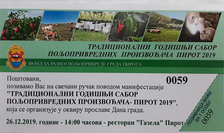 Grad Pirot i Fond za razvoj poljoprivrede u četvrtak, 26. decembra organizuju Tradicionalni godišnji sabor poljoprivrednih proizvodjača - Pirot 2019.