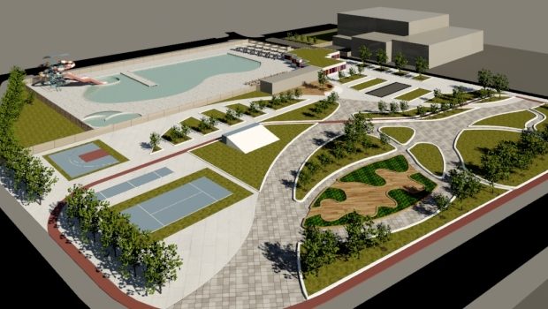Kompleks na kome će se graditi otvoreni gradski bazen u Pirotu se nalazi na parceli između zatvorenog gradskog bazena i šetalista Kej. Ukupna površina parcele je 2,2 ha. Pomenuti kompleks se sastoji iz dve funkcionalno celine. Prva je prostor otvorenog bazena sa pratećim sadržajem. Na ovom delu parcele se predviđa izgradnja kupališta gabarita 50x25m i jedan manji bazen namenjen deci. Prateći sadržaj uz bazen je ulaz, garderobe sa svlačionicama, restoran, tribine, plaža oko bazena, tobogan…