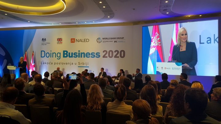 Beograd, 24. oktobar 2019. – Reforme Ministarstva privrede u oblasti zaštite manjinskih akcionara i rešavanja stečaja, kao i rad Ministarstva građevinarstva na daljem unapređenju sistema građevinskih dozvola, pogurali su Srbiju do 44. pozicije na novoj Doing Business listi, što predstavlja skok od četiri mesta u odnosu na prethodnu godinu, rečeno je na IV godišnjoj konferenciji “Doing Business 2020” u Beogradu.